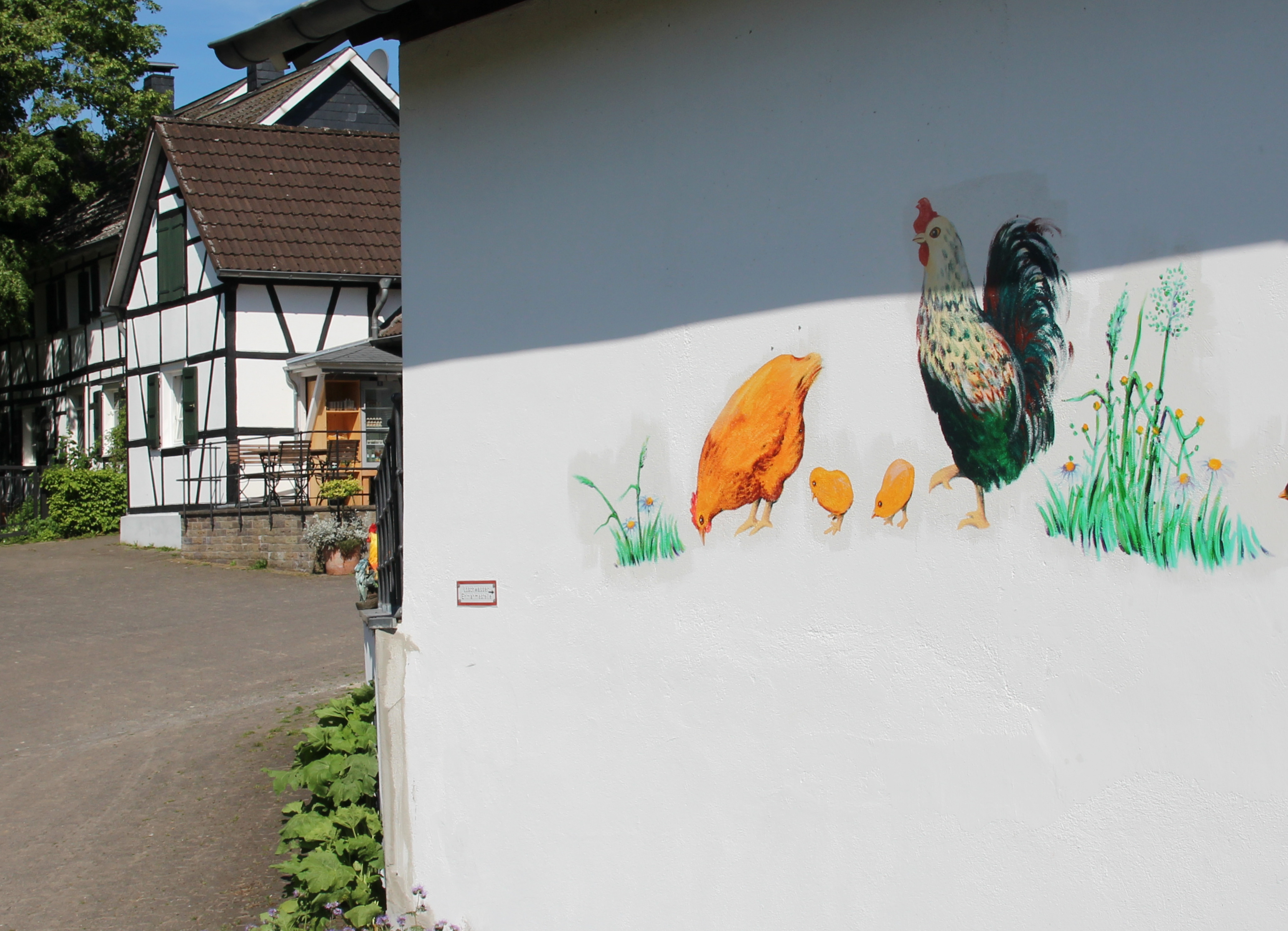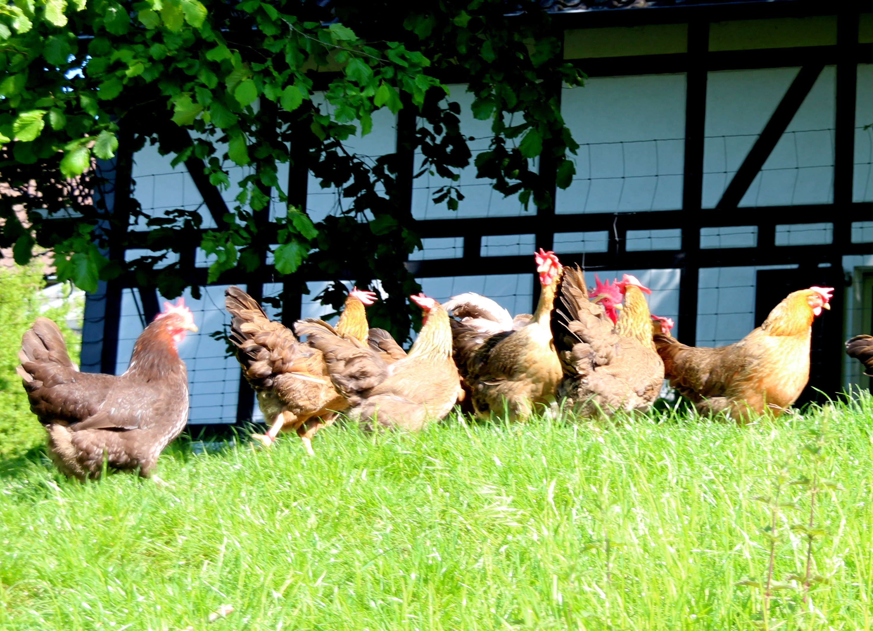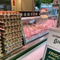 Auf unserem Geflügelhof halten wir 9.000 bis 10.000 Hühner in Freiland und Bodenhaltung. Täglich gehen ca. 6.000 Eier in den Verkauf, denn nicht jedes Huhn legt auch jeden Tag ein Ei. Allein der Hofladen verkauft ca. 1.000 Stück am Tag, die übrigen werden auf dem Marktstand in Bergisch Gladbach, Refrath und Leverkusen-Schlebusch und bei verschiedenen Handelspartnern wie Bäckereien, Lebensmittelhändlern und Supermärkten in der Region verkauft.